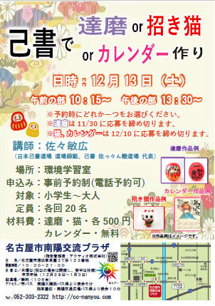講座名 | 己書で達磨or招き猫orカレンダー作り |